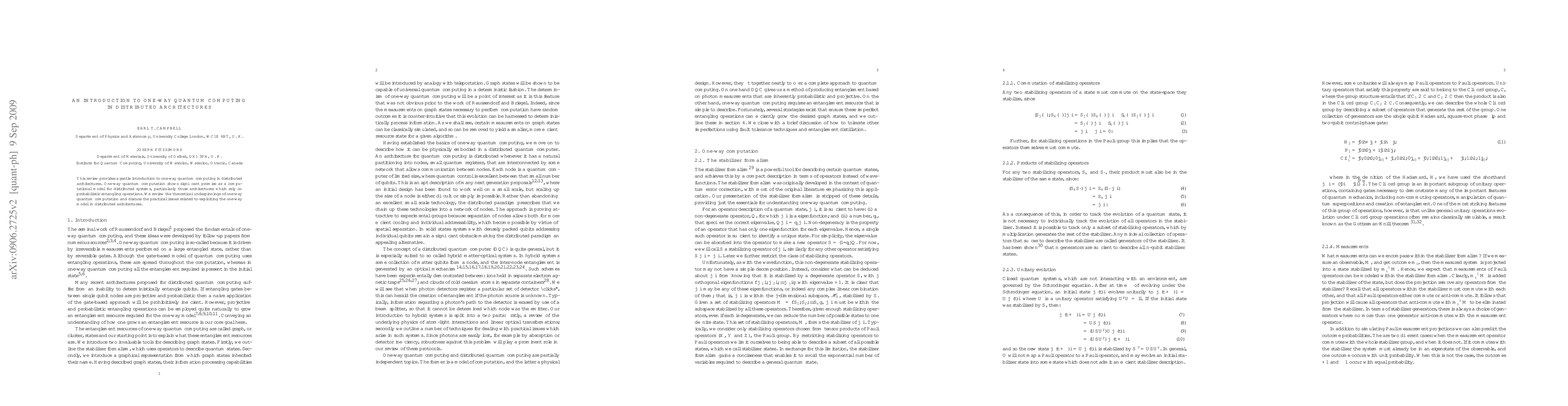 This review provides a gentle introduction to one-way quantum computing in distributed architectures. One-way quantum computation shows significant promise as a computational model for distributed systems, particularly those architectures which rely on probabilistic entangling operations. We review the theoretical underpinnings of one-way quantum computation and discuss the practical issues related to exploiting the one-way model in distributed architectures.