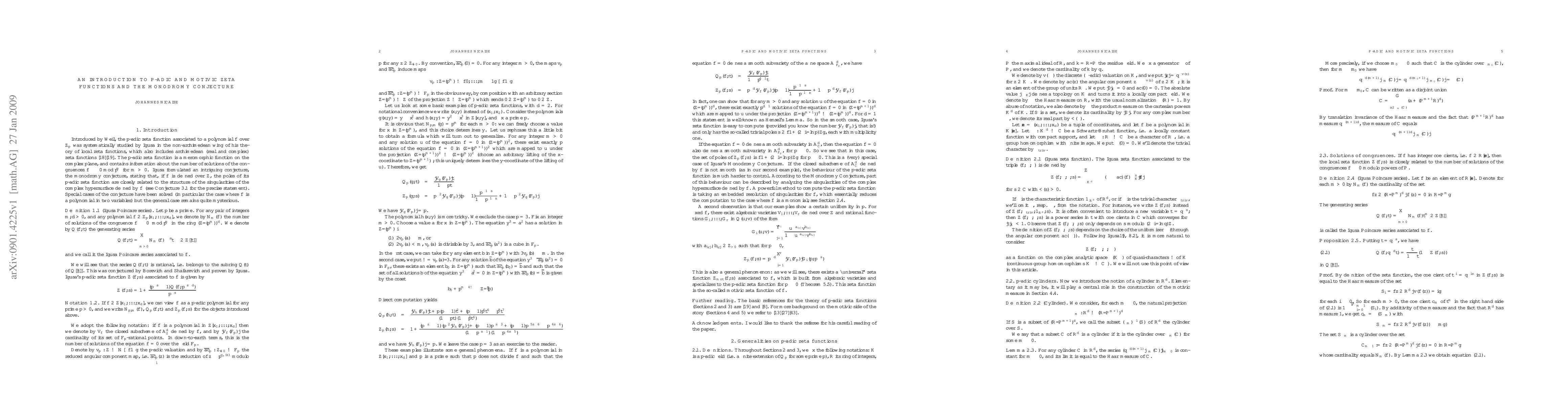 Summary: This paper introduces the foundational concepts of $p$-adic and motivic zeta functions, explores motivic integration, and discusses the monodromy conjecture in mathematical theory.