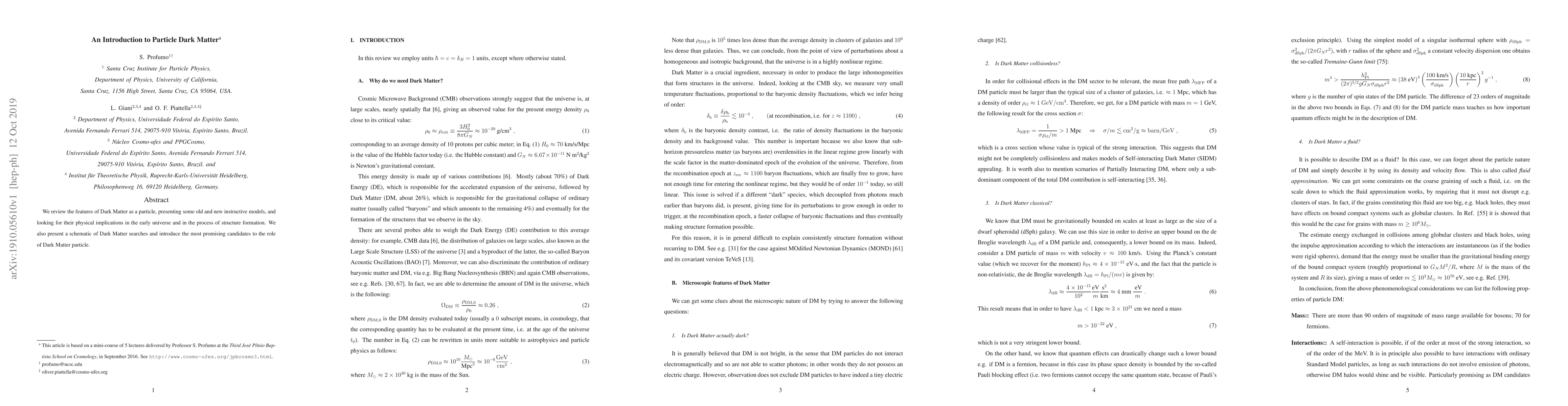 We review the features of Dark Matter as a particle, presenting some old and new instructive models, and looking for their physical implications in the early universe and in the process of structure formation. We also present a schematic of Dark Matter searches and introduce the most promising candidates to the role of Dark Matter particle.