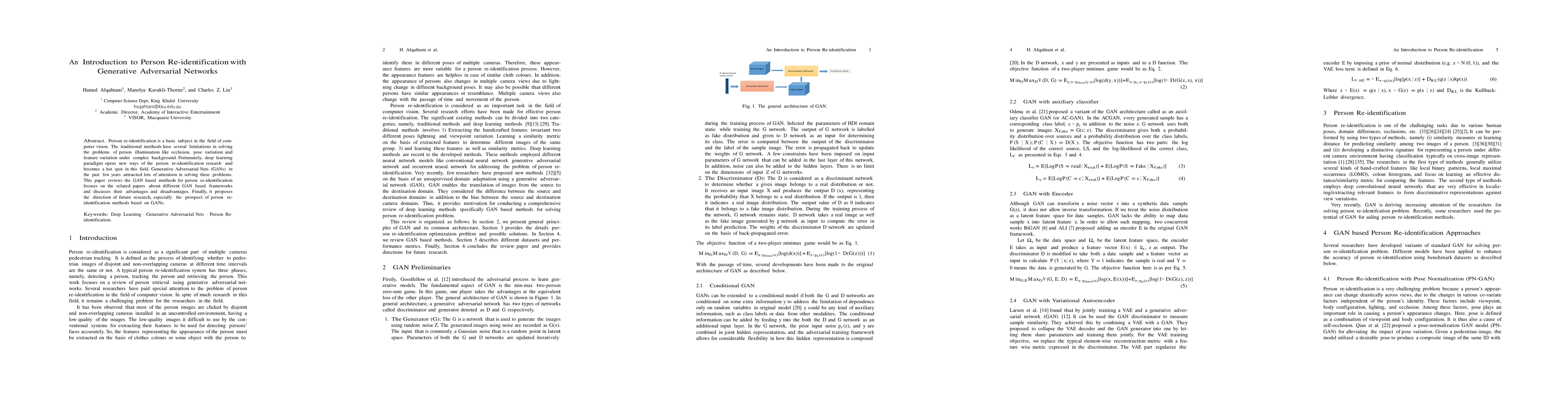 This paper reviews the application of Generative Adversarial Networks (GANs) in person re-identification, highlighting their advantages in addressing challenges like occlusion, pose, and illumination variations. It discusses various GAN-based frameworks and proposes future research directions for GAN-enhanced person re-identification methods.