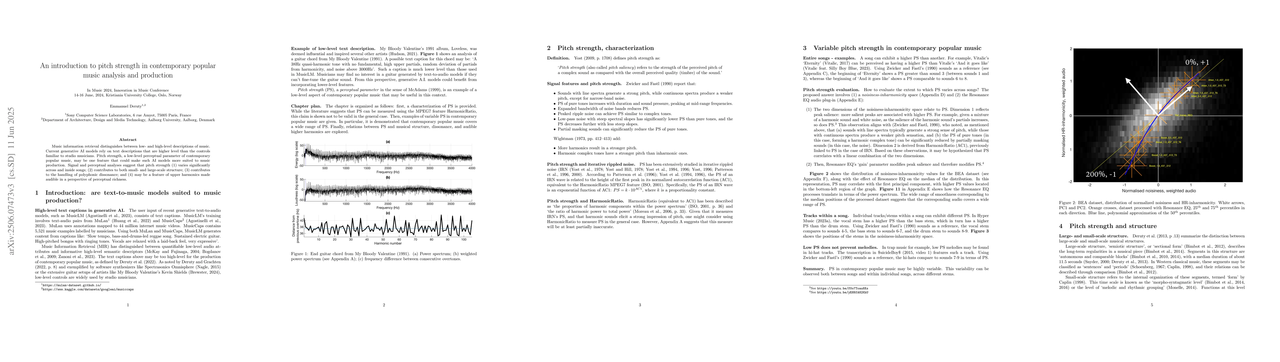Music information retrieval distinguishes between low- and high-level descriptions of music. Current generative AI models rely on text descriptions that are higher level than the controls familiar to studio musicians. Pitch strength, a low-level perceptual parameter of contemporary popular music, may be one feature that could make such AI models more suited to music production. Signal and perceptual analyses suggest that pitch strength (1) varies significantly across and inside songs; (2) contributes to both small- and large-scale structure; (3) contributes to the handling of polyphonic dissonance; and (4) may be a feature of upper harmonics made audible in a perspective of perceptual richness.