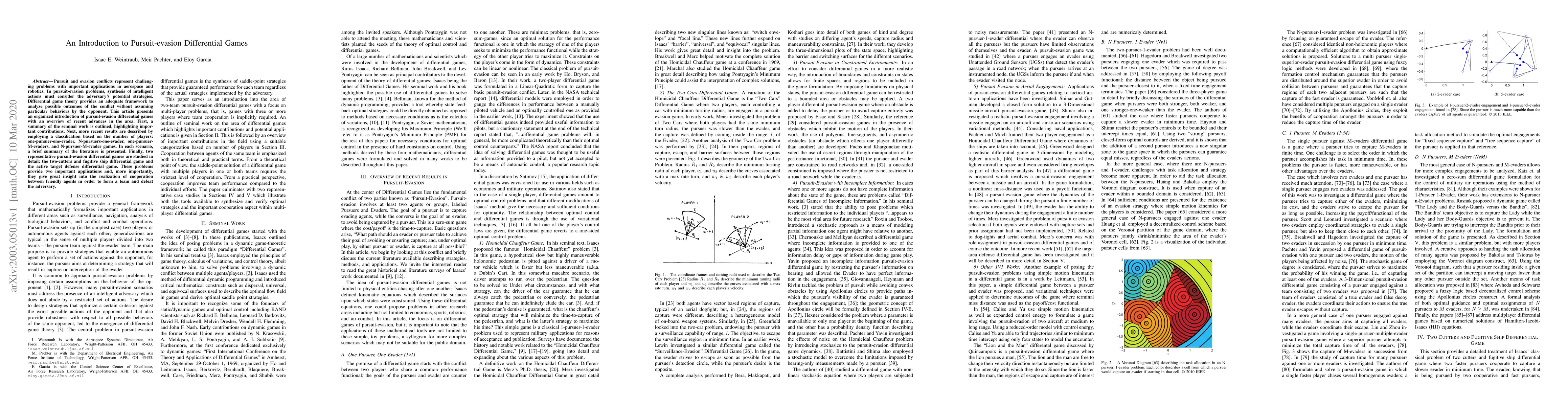 This paper provides an introduction to pursuit-evasion differential games, emphasizing their applications in aerospace and robotics. It reviews seminal work and recent advances, classifying scenarios by the number of players, and in-depth analyzes two representative games to illustrate cooperative strategies.