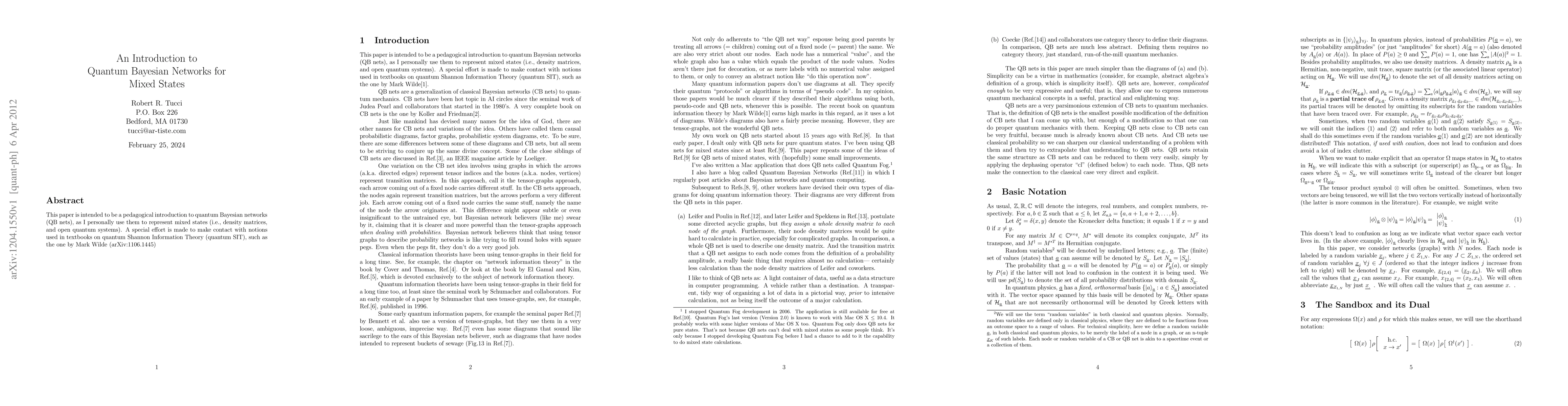 This paper provides an accessible introduction to quantum Bayesian networks (QB nets) for representing mixed quantum states, with a focus on linking these concepts to quantum Shannon Information Theory. It aims to bridge the gap between QB nets and established notions in quantum information science.