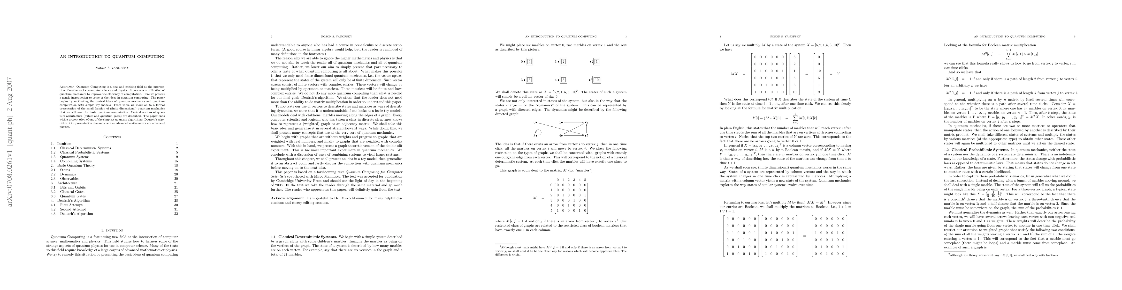 Quantum Computing is a new and exciting field at the intersection of mathematics, computer science and physics. It concerns a utilization of quantum mechanics to improve the efficiency of computation. Here we present a gentle introduction to some of the ideas in quantum computing. The paper begins by motivating the central ideas of quantum mechanics and quantum computation with simple toy models. From there we move on to a formal presentation of the small fraction of (finite dimensional) quantum mechanics that we will need for basic quantum computation. Central notions of quantum architecture (qubits and quantum gates) are described. The paper ends with a presentation of one of the simplest quantum algorithms: Deutsch's algorithm. Our presentation demands neither advanced mathematics nor advanced physics.