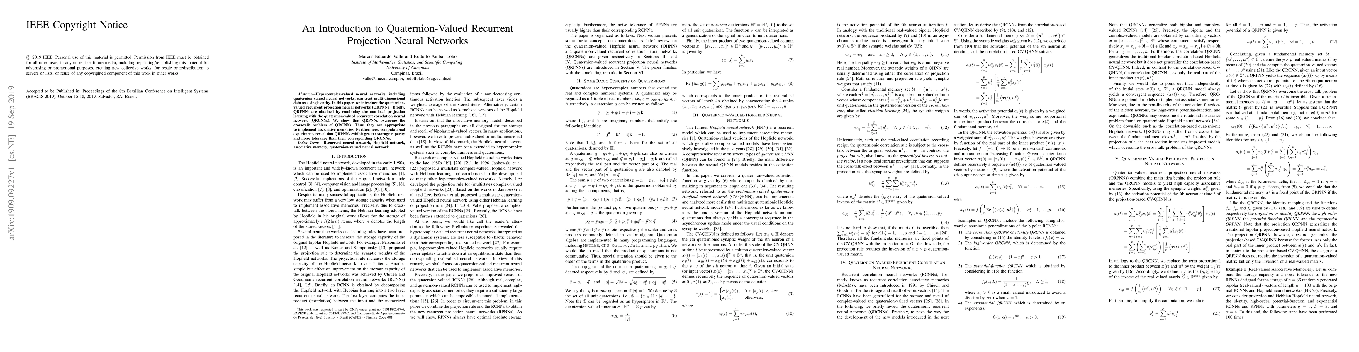 This paper introduces quaternion-valued recurrent projection neural networks (QRPNNs), combining non-local projection learning with quaternion-valued recurrent correlation neural networks (QRCNNs). QRPNNs effectively address the cross-talk issue of QRCNNs, demonstrating enhanced storage capacity and noise tolerance.