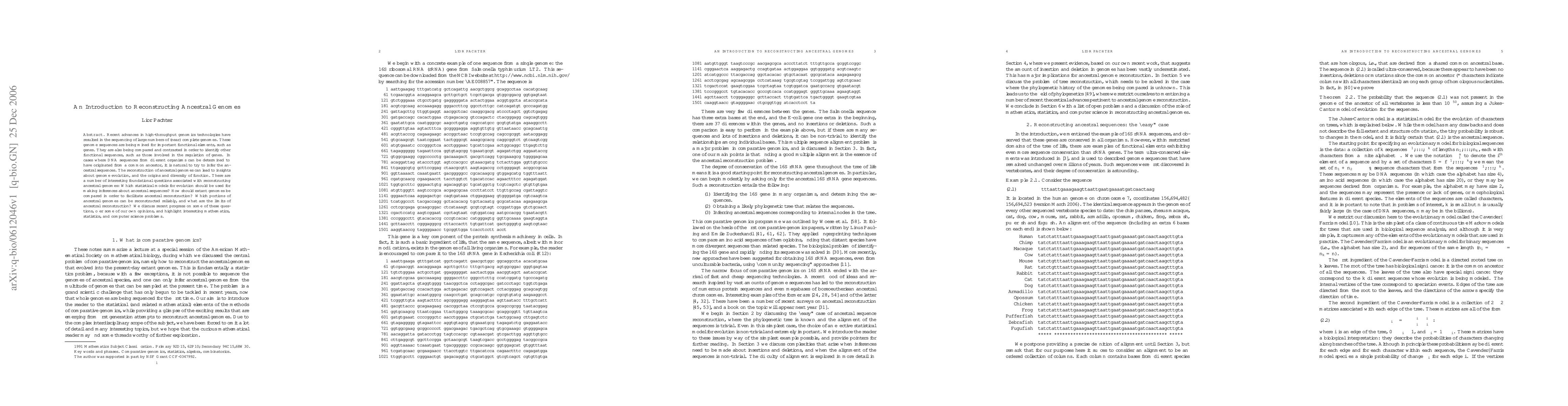 This paper explores the reconstruction of ancestral genomes using high-throughput genomics data, focusing on statistical models for evolution, comparative genomics techniques, and the challenges of reliably inferring ancestral sequences. It discusses recent advances and poses foundational questions regarding the limits of ancestral genome reconstruction.