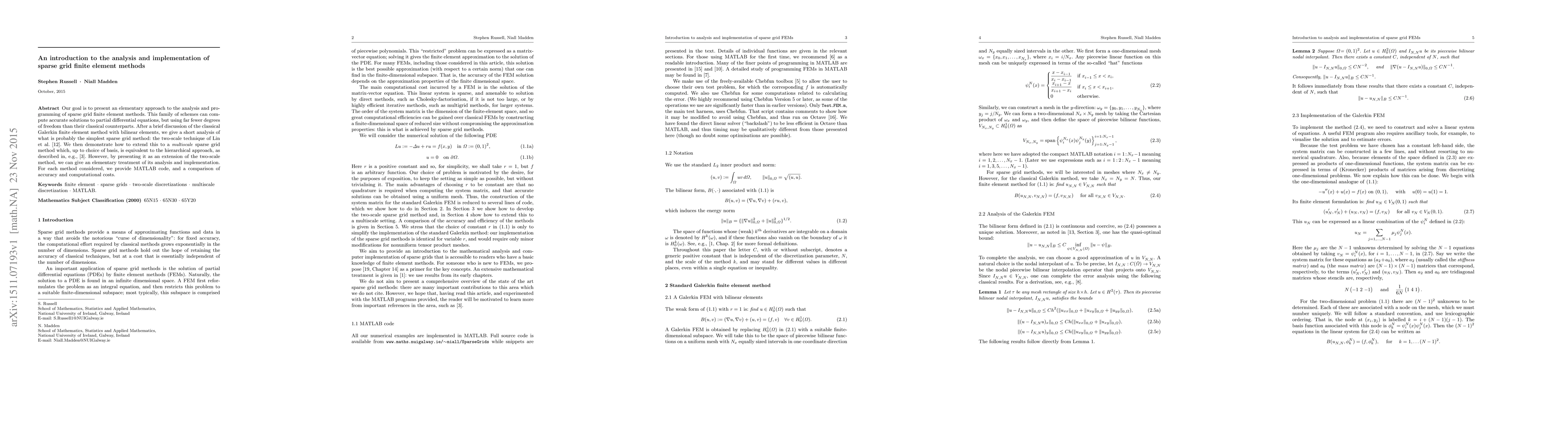 This paper introduces an elementary approach to analyzing and implementing sparse grid finite element methods, which can solve partial differential equations with fewer degrees of freedom than classical methods.