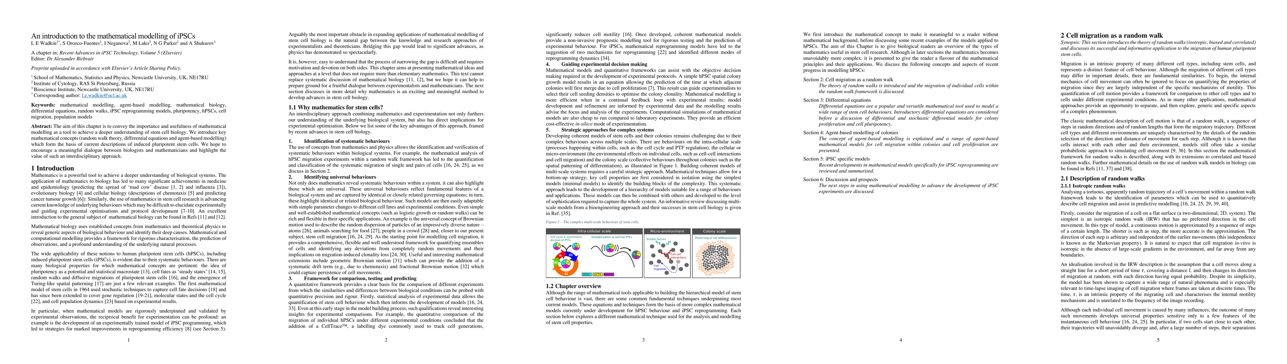 This paper introduces mathematical modelling techniques, including random walk theory, differential equations, and agent-based modelling, to deepen the understanding of induced pluripotent stem cells (iPSCs). It aims to foster collaboration between biologists and mathematicians to enhance the interdisciplinary study of stem cell biology.