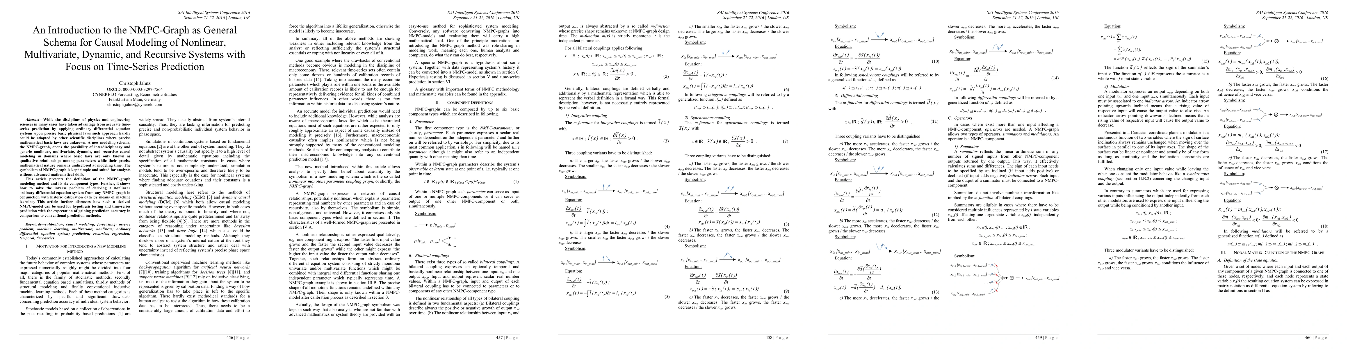 While the disciplines of physics and engineering sciences in many cases have taken advantage from accurate time-series prediction of system behaviour by applying ordinary differential equation systems upon precise basic physical laws such approach hardly could be adopted by other scientific disciplines where precise mathematical basic laws are unknown. A new modelling schema, the NMPC-graph, opens the possibility of interdisciplinary and generic nonlinear, multivariate, dynamic, and recursive causal modelling in domains where basic laws are only known as qualitative relationships among parameters while their precise mathematical nature remains undisclosed at modelling time. The symbolism of NMPC-graph is kept simple and suited for analysts without advanced mathematical skills. This article presents the definition of the NMPC-graph modelling method and its six component types. Further, it shows how to solve the inverse problem of deriving a nonlinear ordinary differential equation system from any NMPC-graph in conjunction with historic calibration data by means of machine learning. This article further discusses how such a derived NMPC-model can be used for hypothesis testing and time-series prediction with the expectation of gaining prediction accuracy in comparison to conventional prediction methods.