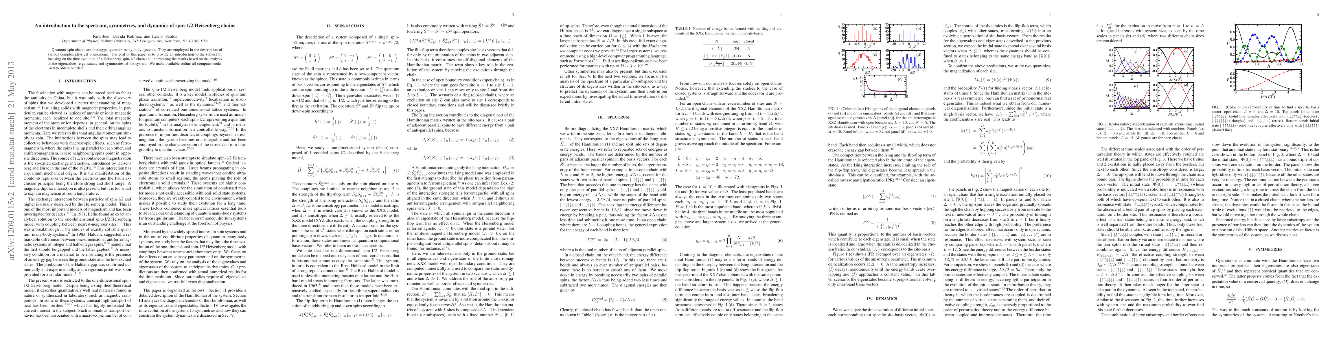 This paper introduces the study of Heisenberg spin-1/2 chains, analyzing their time evolution, eigenvalues, and symmetries to provide insights into quantum many-body systems. The research focuses on understanding complex physical phenomena using this prototype quantum system.