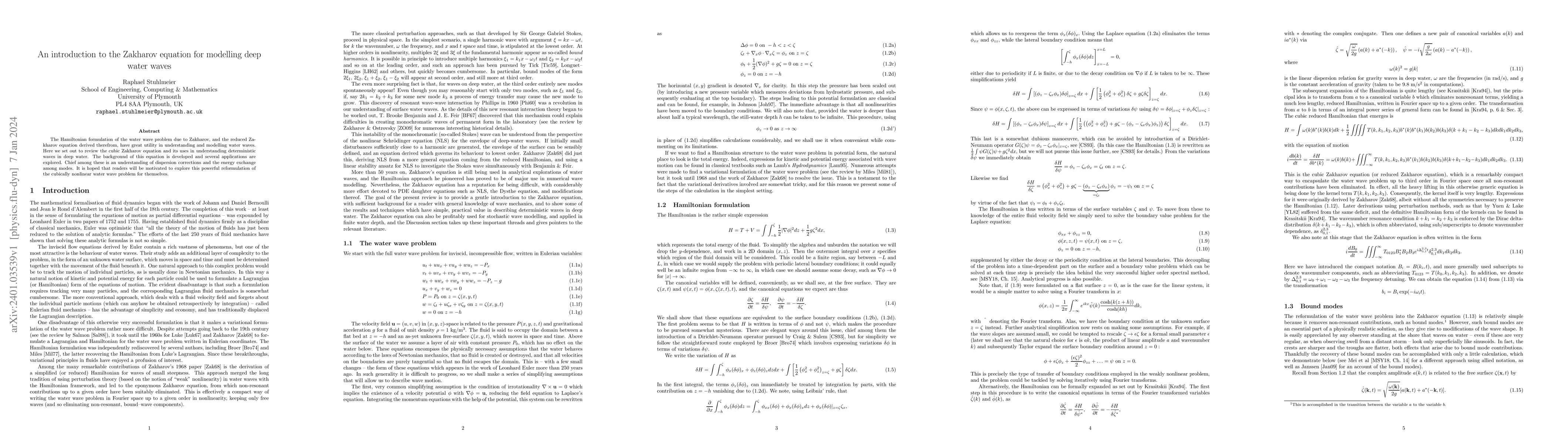 The Hamiltonian formulation of the water wave problem due to Zakharov, and the reduced Zakharov equation derived therefrom, have great utility in understanding and modelling water waves. Here we set out to review the cubic Zakharov equation and its uses in understanding deterministic waves in deep water. The background of this equation is developed and several applications are explored. Chief among these is an understanding of dispersion corrections and the energy exchange among modes. It is hoped that readers will be motivated to explore this powerful reformulation of the cubically nonlinear water wave problem for themselves.