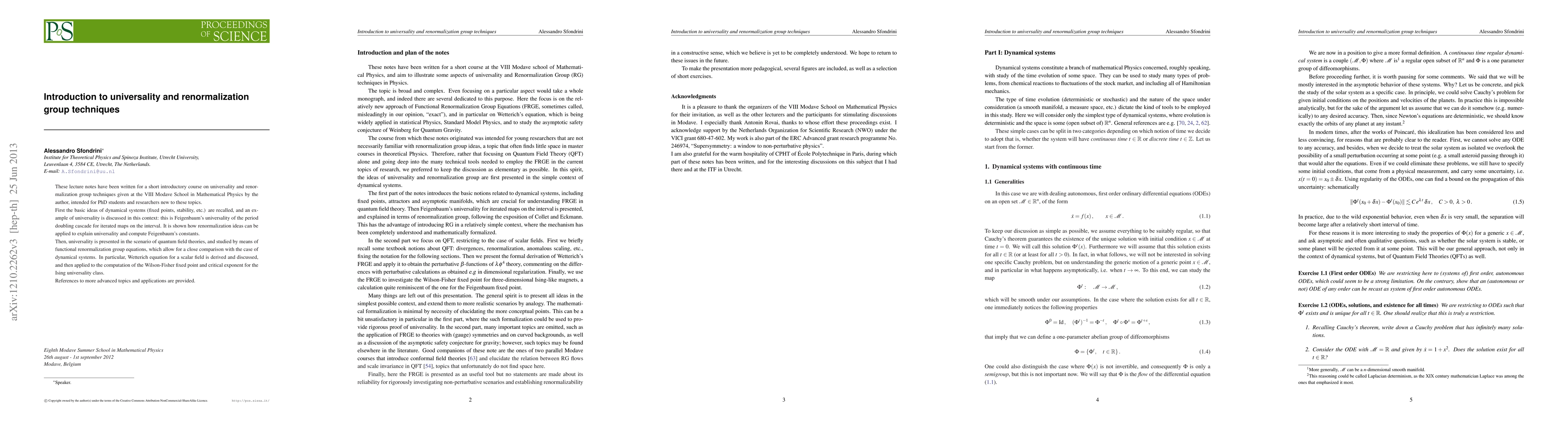 This research paper introduces universality and renormalization group techniques, exploring how these concepts apply to both dynamical systems and quantum field theories, with implications for understanding complex phenomena such as the Ising universality class.
