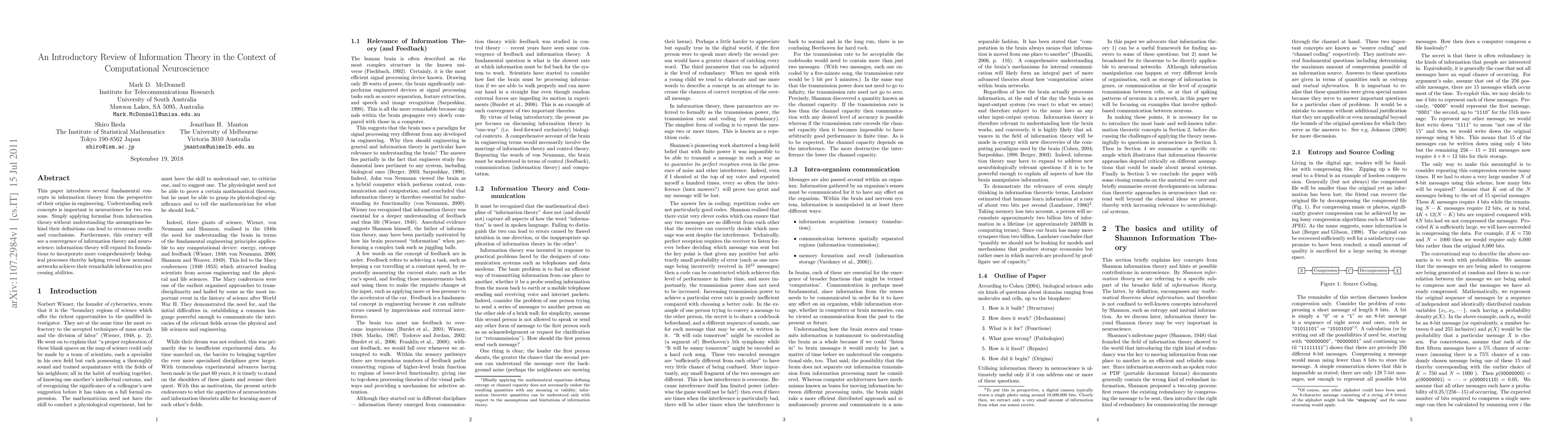 This paper introduces information theory in neuroscience, highlighting its importance for understanding neuronal networks and promoting a convergence of fields. It aims to explain complex biological processes through the lens of engineering concepts.