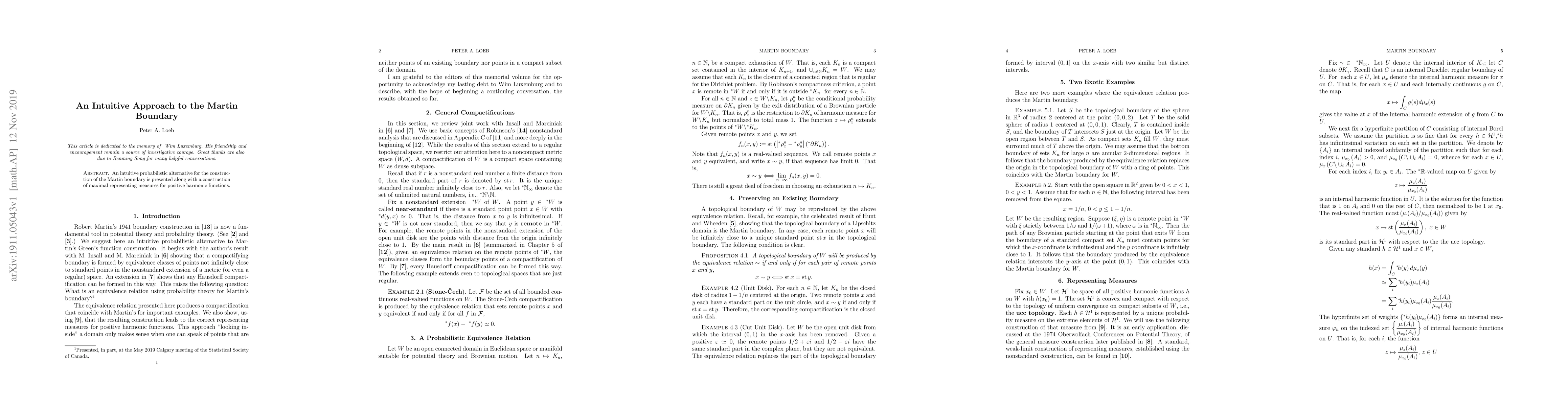 Summary: This paper introduces an intuitive probabilistic method for constructing the Martin boundary and provides a framework for determining maximal representing measures for positive harmonic functions. The approach aims to simplify the understanding of the Martin boundary through probabilistic insights.