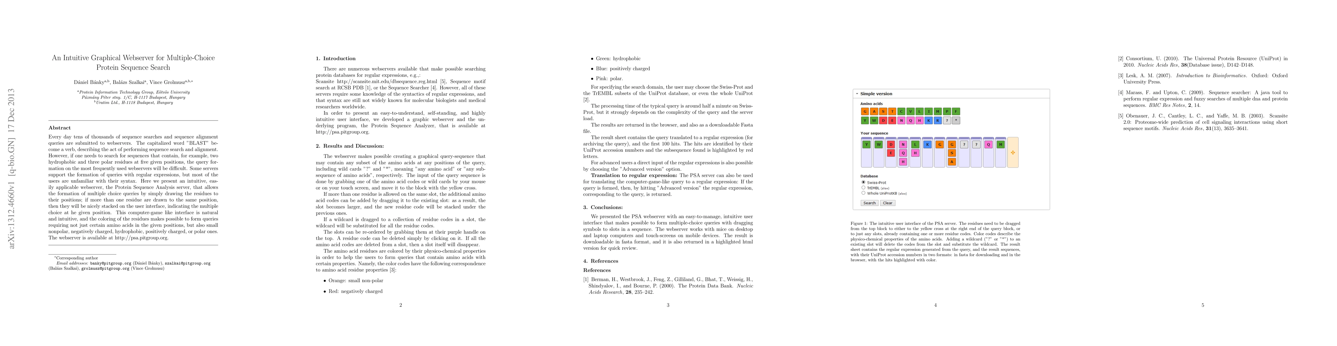 A new web server allows users to create multiple-choice protein sequence search queries by drawing residues to their positions, making it intuitive and user-friendly.