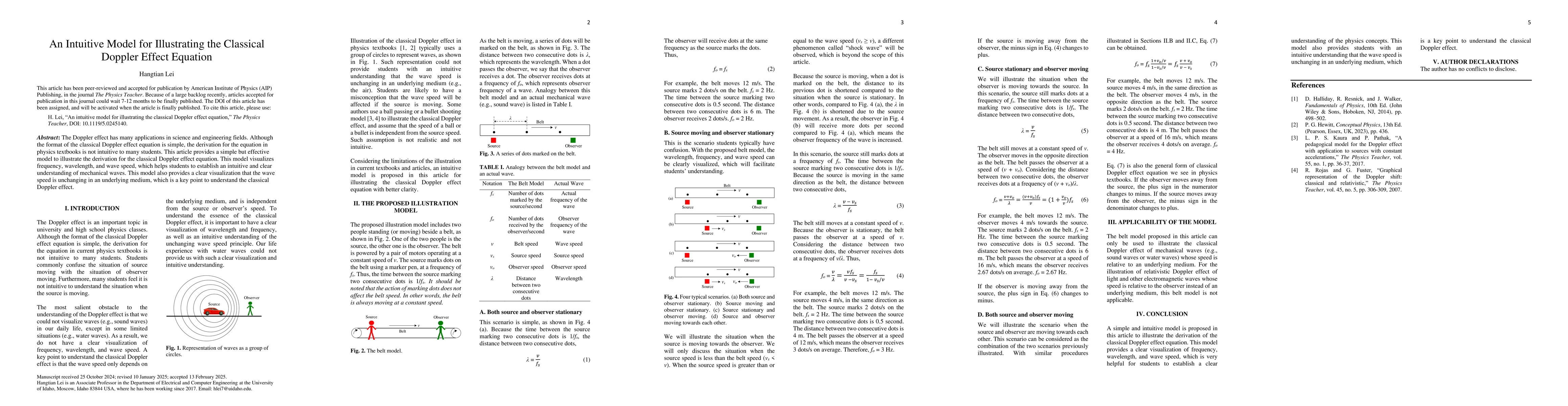 A new model illustrates the classical Doppler effect equation, helping students understand frequency, wavelength, and wave speed in mechanical waves. It clarifies that wave speed remains constant in an underlying medium, a key concept for understanding the Doppler effect.