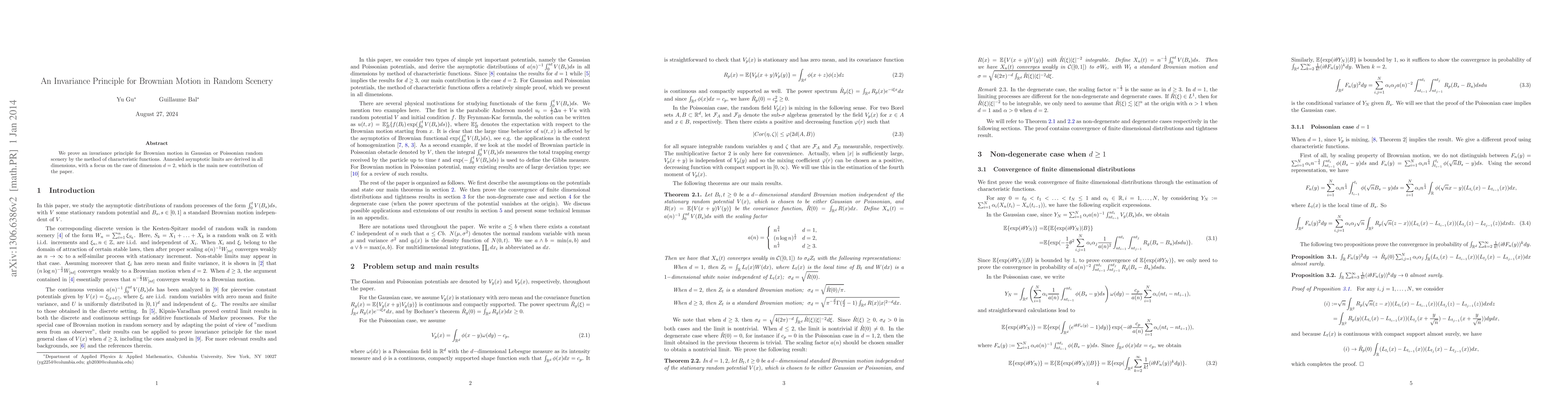 This paper establishes an invariance principle for Brownian motion influenced by Gaussian or Poissonian random environments, utilizing characteristic functions. The main novel contribution is the derivation of annealed asymptotic limits in all dimensions, with special emphasis on the two-dimensional case.