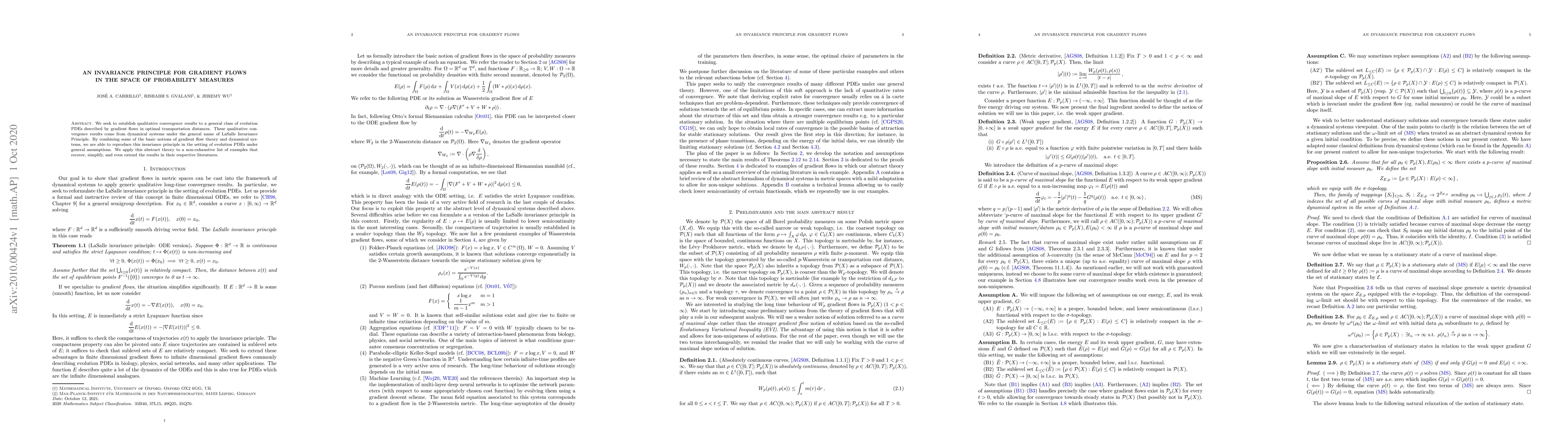 We seek to establish qualitative convergence results to a general class of evolution PDEs described by gradient flows in optimal transportation distances. These qualitative convergence results come from dynamical systems under the general name of LaSalle Invariance Principle. By combining some of the basic notions of gradient flow theory and dynamical systems, we are able to reproduce this invariance principle in the setting of evolution PDEs under general assumptions. We apply this abstract theory to a non-exhaustive list of examples that recover, simplify, and even extend the results in their respective literatures.