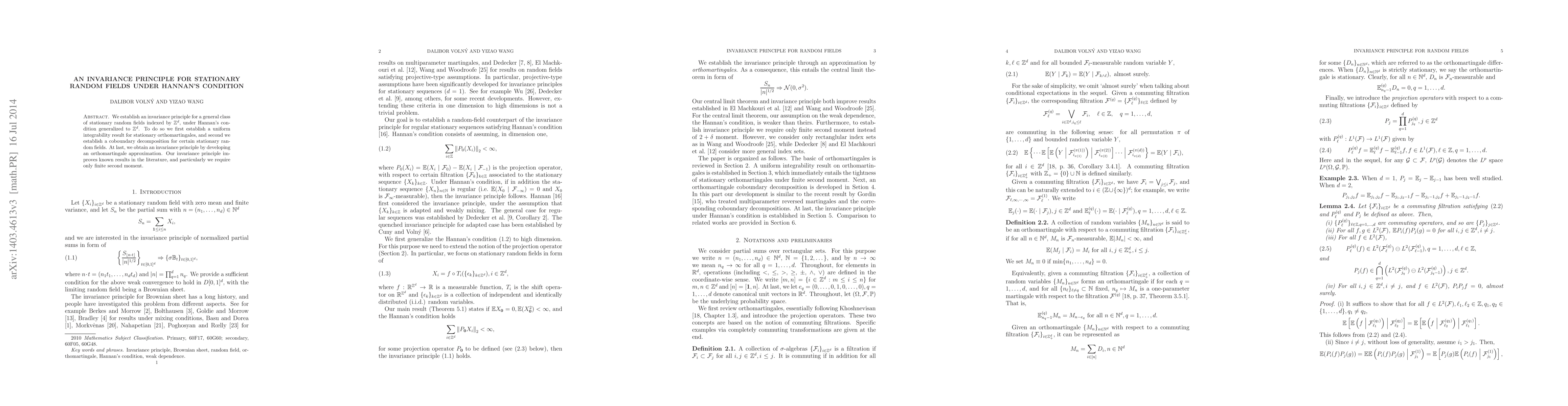 This paper establishes an invariance principle for stationary random fields indexed by $\mathbb Z^d$ under a generalized Hannan's condition, improving existing results by requiring only finite second moments. The authors achieve this through uniform integrability results and coboundary decompositions.