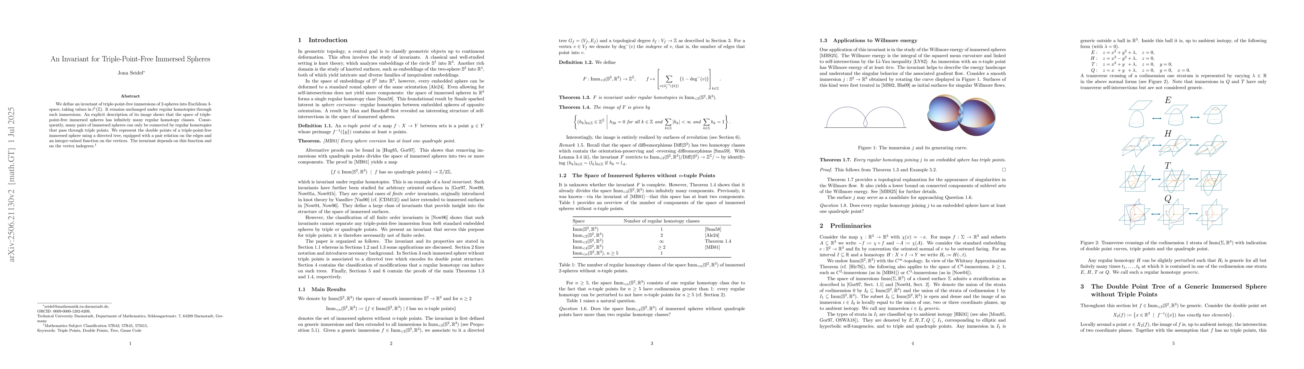 The paper introduces a novel invariant based on directed trees and local normal forms that captures the combinatorial and topological complexity of triple-point-free immersed spheres, along with an explicit description of its image.