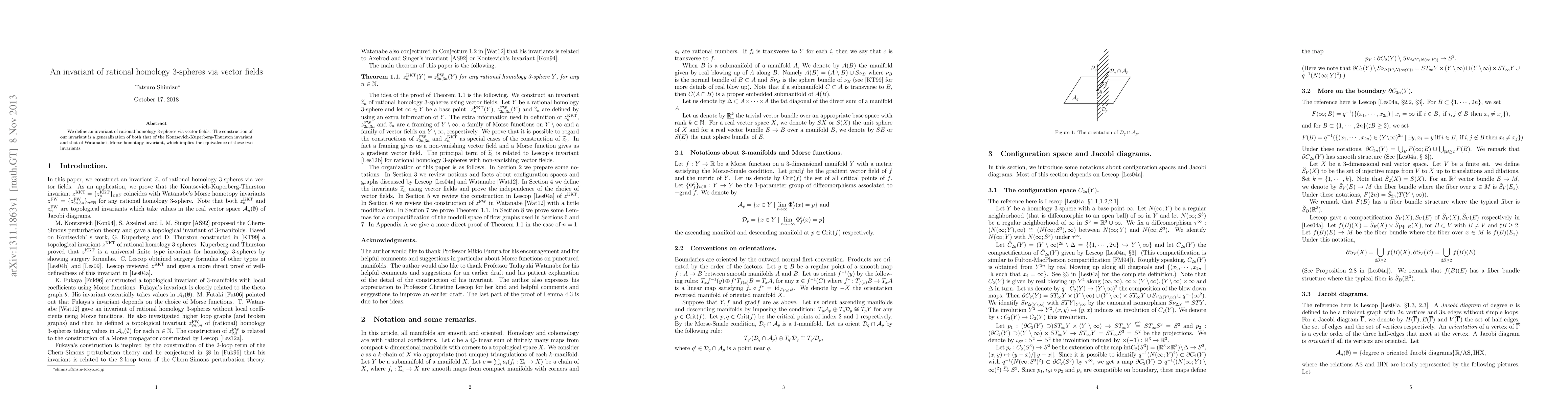 We define an invariant of rational homology 3-spheres via vector fields. The construction of our invariant is a generalization of both that of the Kontsevich-Kuperberg-Thurston invariant and that of Watanabe's Morse homotopy invariant, which implies the equivalence of these two invariants.