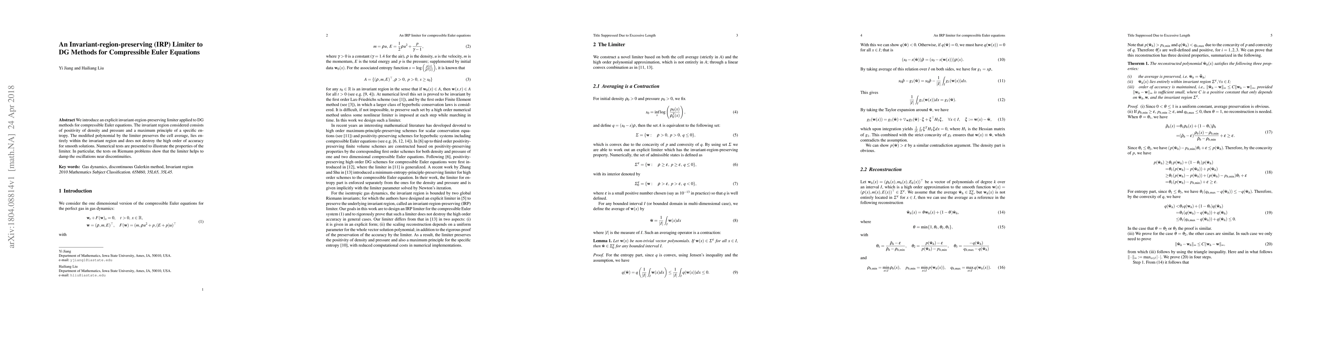 This paper proposes an explicit invariant-region-preserving limiter for Discontinuous Galerkin (DG) methods applied to compressible Euler equations, ensuring positivity of density and pressure, and maintaining a specific entropy's maximum principle. The limiter preserves cell averages and maintains high order accuracy while damping oscillations near discontinuities, as demonstrated by numerical tests on Riemann problems.