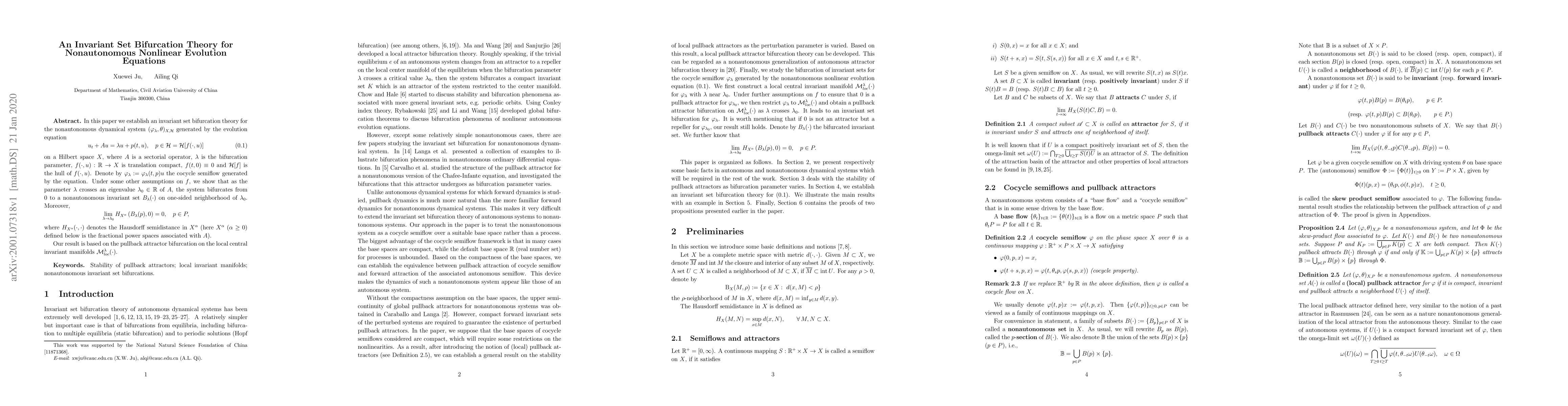 A bifurcation theory for nonautonomous nonlinear evolution equations is presented, showing how a system changes from an invariant set of solutions to another as a parameter crosses a specific value, leading to the emergence of new attractors.