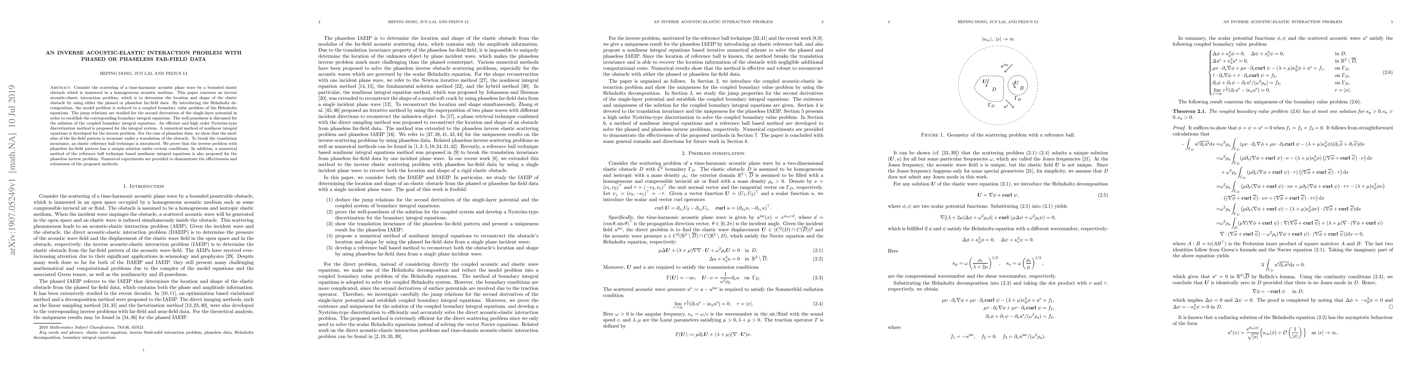 This paper addresses an inverse acoustic-elastic interaction problem to determine the location and shape of an elastic obstacle using phased or phaseless far-field data. It proposes an efficient Nyström-type discretization method and a novel elastic reference ball technique to break translation invariance for phaseless data, ensuring a unique solution under certain conditions.