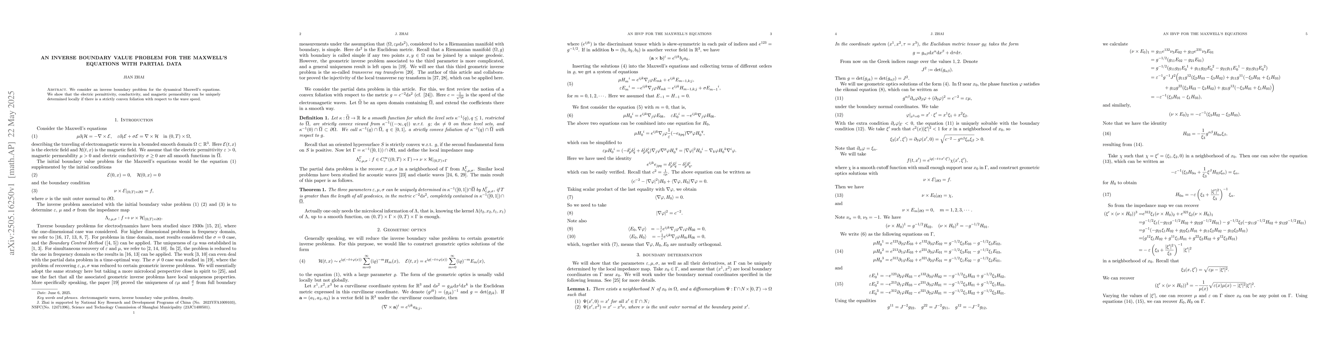 Researchers show that Maxwell's equations can be uniquely solved with partial data if a strictly convex foliation exists with respect to the wave speed.
