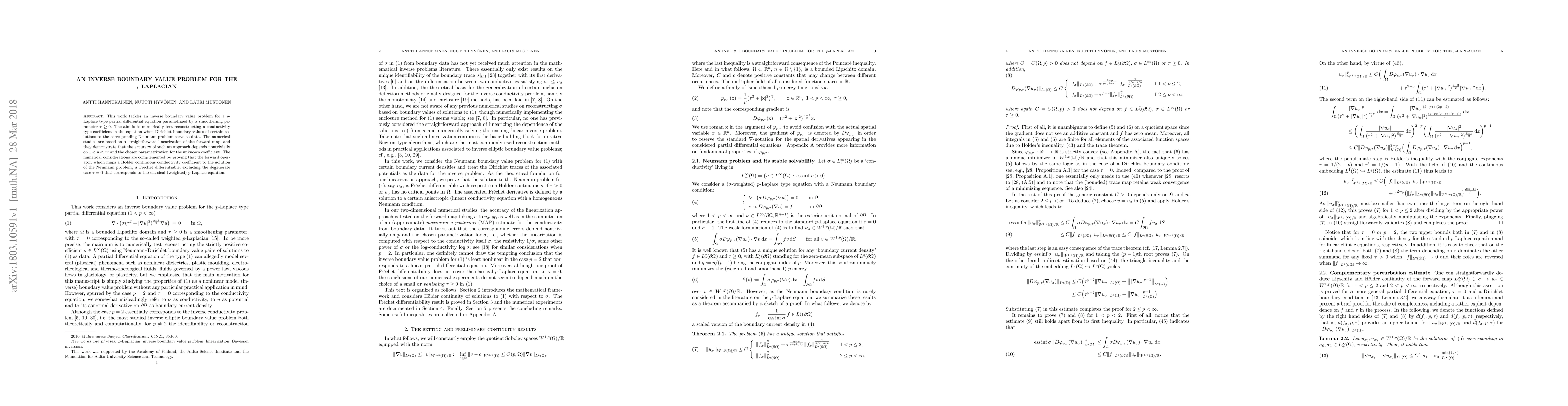 This paper addresses an inverse boundary value problem for a $p$-Laplace type PDE, focusing on reconstructing a conductivity coefficient using Dirichlet boundary values. Numerical results show that the accuracy of the reconstruction depends on the parameter $p$ and the parametrization of the coefficient, while theoretical results prove the Fréchet differentiability of the forward operator for non-degenerate cases.