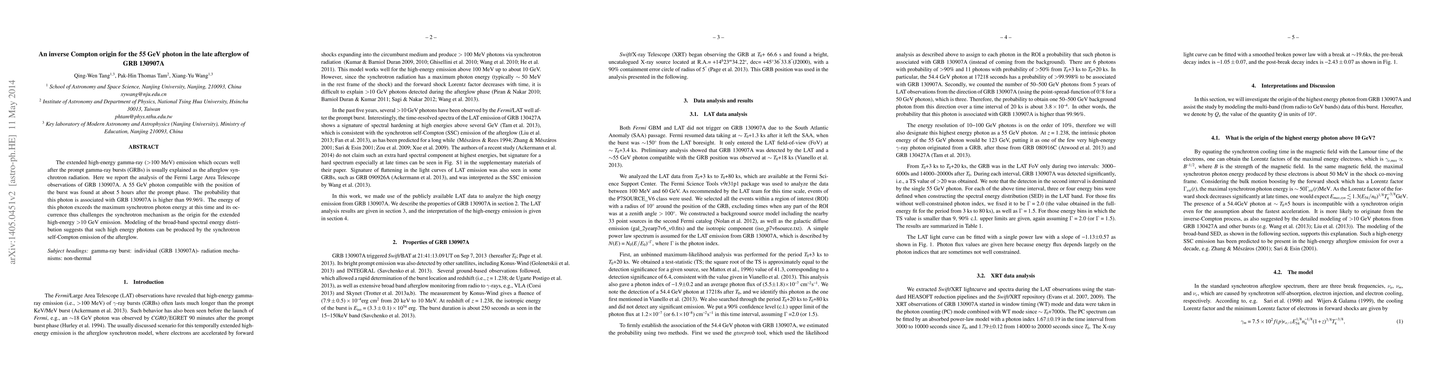 Researchers found a 55 GeV photon in GRB 130907A's late afterglow that challenges the synchrotron mechanism, instead suggesting synchrotron self-Compton emission as an alternative origin for high-energy photons.