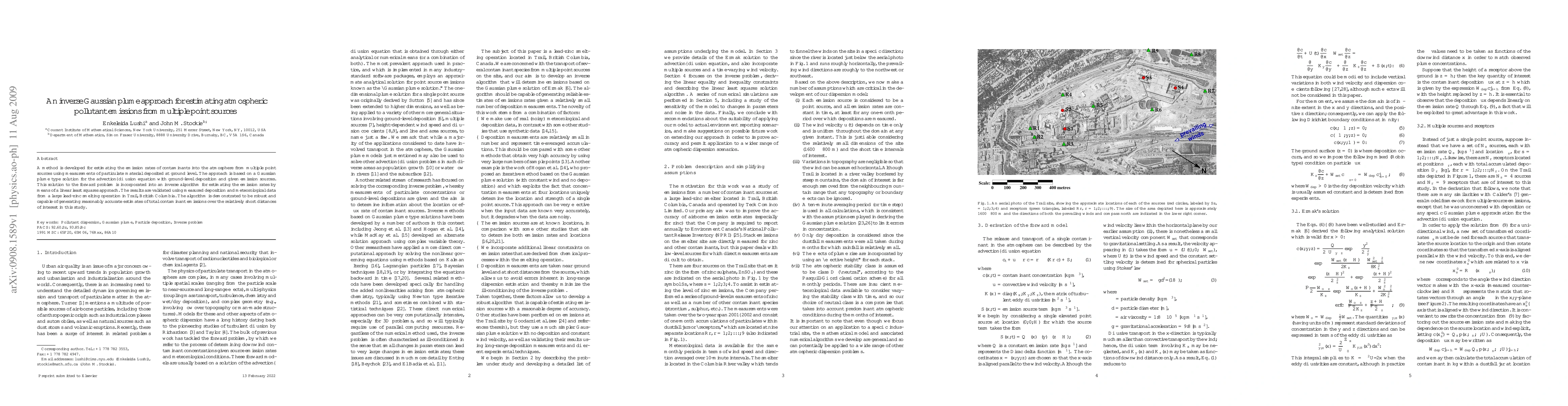 This paper develops an inverse Gaussian plume method to estimate atmospheric pollutant emissions from multiple point sources using ground-level particulate deposition measurements. The method employs a linear least squares approach to derive emission rates, validated against data from a lead-zinc smelting operation in Trail, British Columbia, showing robust and accurate emission estimations.