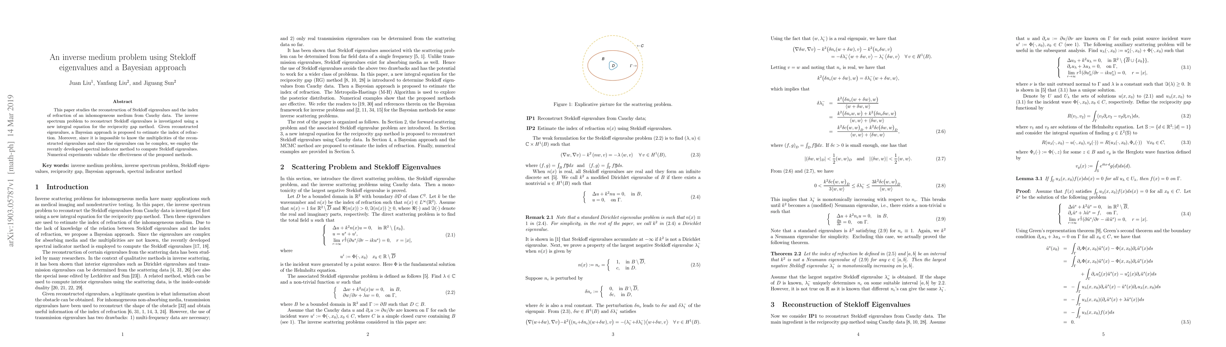 This paper proposes a new method to reconstruct Stekloff eigenvalues and the index of refraction from Cauchy data using an integral equation and a Bayesian approach. It employs the spectral indicator method to handle complex and unknown multiplicity eigenvalues, validated by numerical experiments.