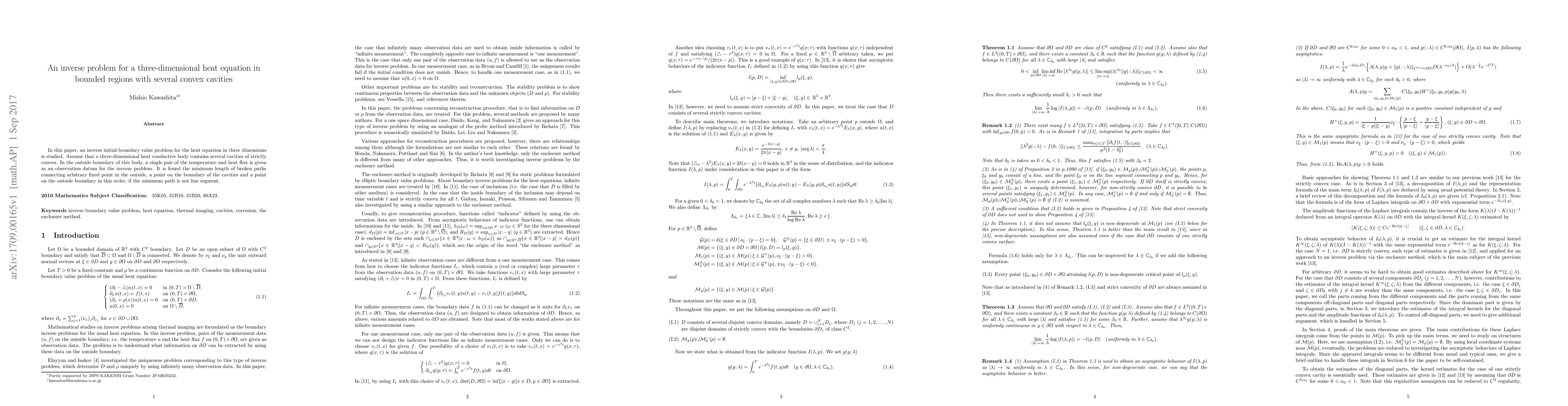 Summary: This paper investigates an inverse problem for the three-dimensional heat equation in a body with several strictly convex cavities. The study determines the minimum length of non-linear paths connecting points across the body, given a single pair of temperature and heat flux measurements on the outer boundary.