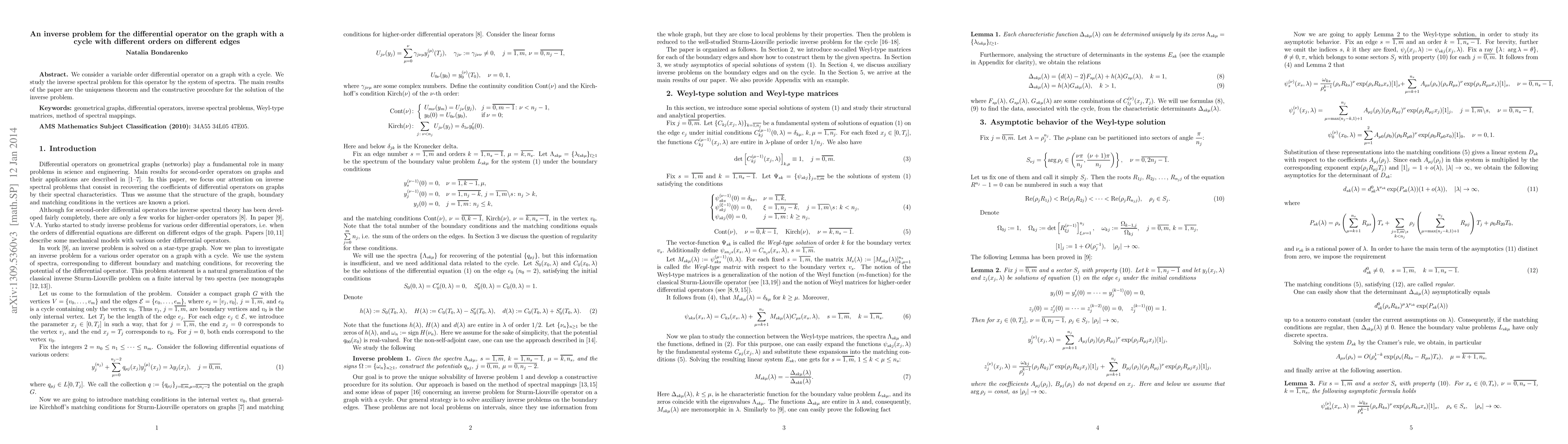 We consider a variable order differential operator on a graph with a cycle. We study the inverse spectral problem for this operator by the system of spectra. The main results of the paper are the uniqueness theorem and the constructive procedure for the solution of the inverse problem.