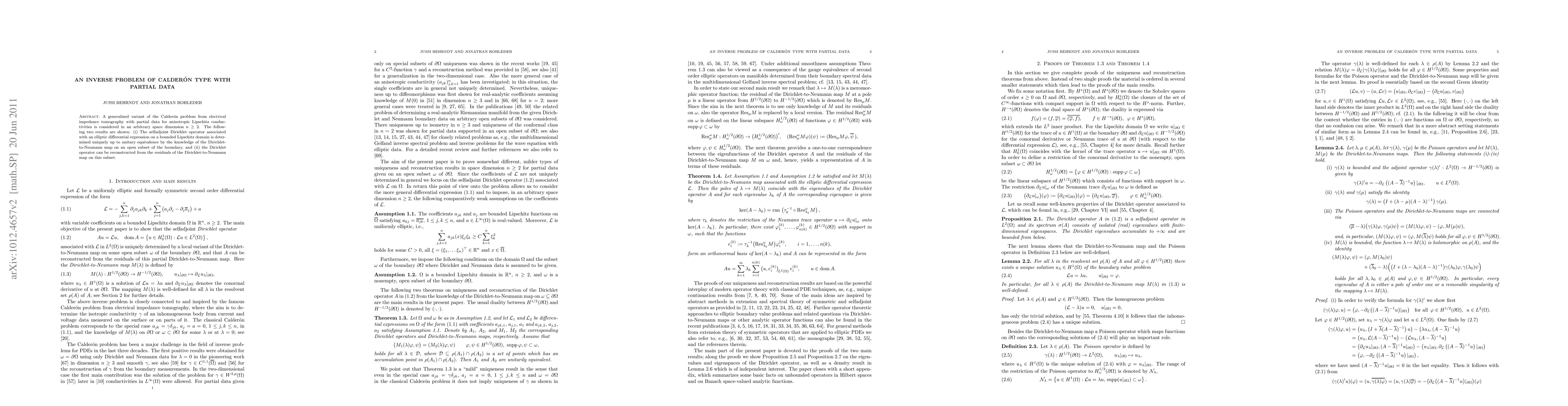 A generalized variant of the Calder\'on problem from electrical impedance tomography with partial data for anisotropic Lipschitz conductivities is considered in an arbitrary space dimension $n \geq 2$. The following two results are shown: (i) The selfadjoint Dirichlet operator associated with an elliptic differential expression on a bounded Lipschitz domain is determined uniquely up to unitary equivalence by the knowledge of the Dirichlet-to-Neumann map on an open subset of the boundary, and (ii) the Dirichlet operator can be reconstructed from the residuals of the Dirichlet-to-Neumann map on this subset.