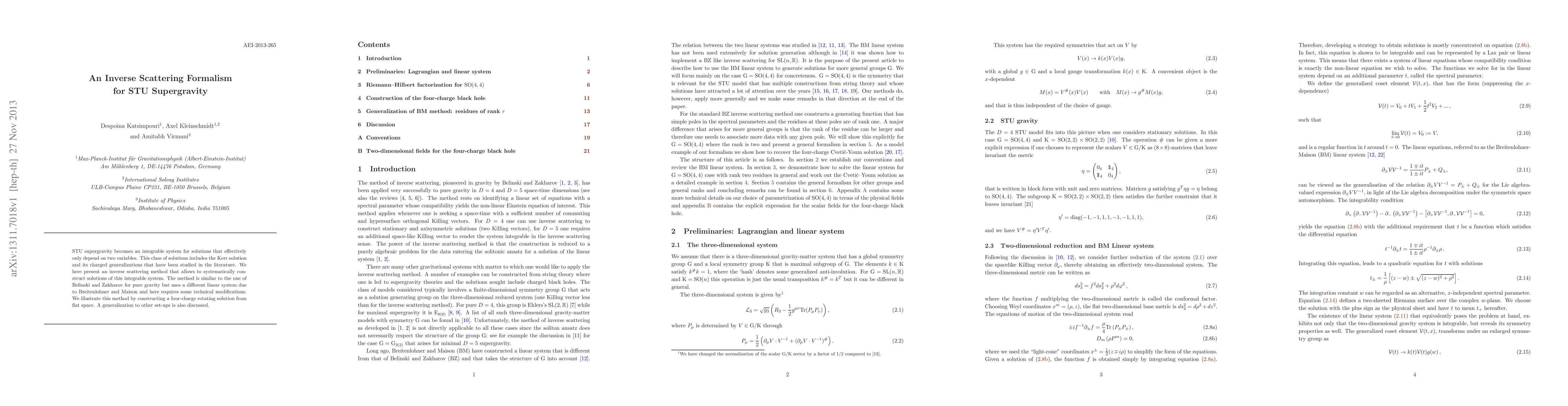 STU supergravity becomes an integrable system for solutions that effectively only depend on two variables. This class of solutions includes the Kerr solution and its charged generalizations that have been studied in the literature. We here present an inverse scattering method that allows to systematically construct solutions of this integrable system. The method is similar to the one of Belinski and Zakharov for pure gravity but uses a different linear system due to Breitenlohner and Maison and here requires some technical modifications. We illustrate this method by constructing a four-charge rotating solution from flat space. A generalization to other set-ups is also discussed.