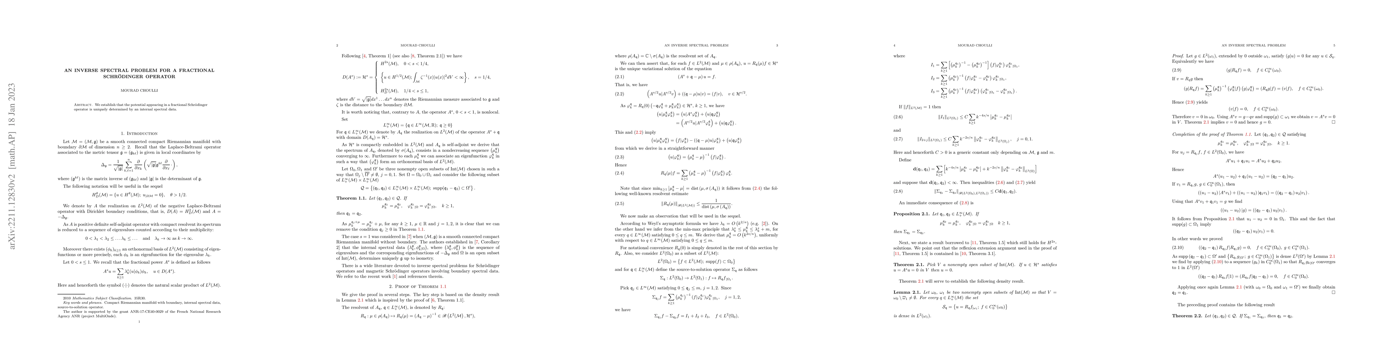 Summary: This paper demonstrates that the potential in a fractional Schrödinger operator can be uniquely identified based solely on internal spectral data, addressing an inverse spectral problem.