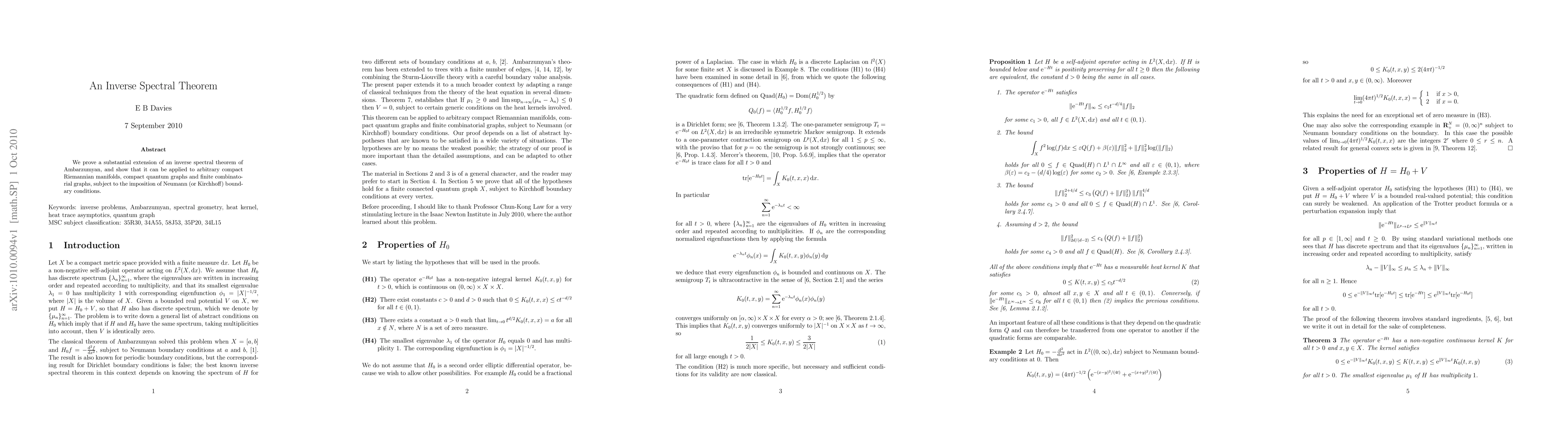 We prove a substantial extension of an inverse spectral theorem of Ambarzumyan, and show that it can be applied to arbitrary compact Riemannian manifolds, compact quantum graphs and finite combinatorial graphs, subject to the imposition of Neumann (or Kirchhoff) boundary conditions.
