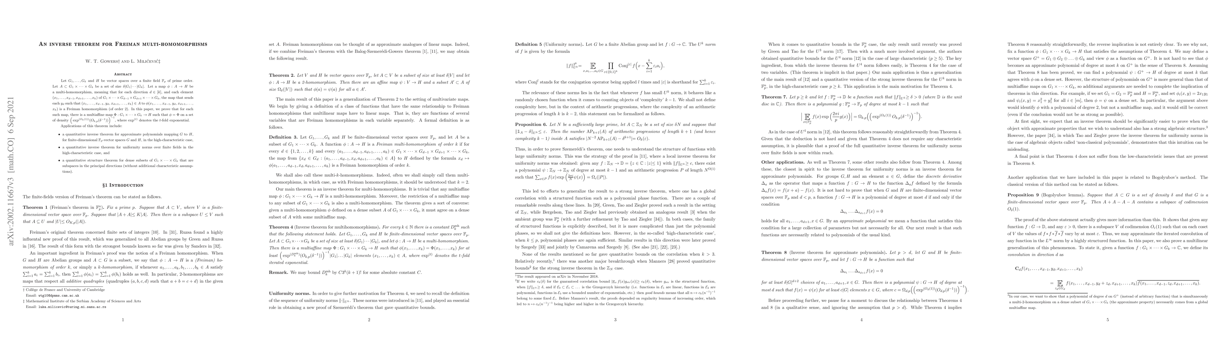 Let $G_1, \dots, G_k$ and $H$ be vector spaces over a finite field $\mathbb{F}_p$ of prime order. Let $A \subset G_1 \times\dots\times G_k$ be a set of size $\delta |G_1| \cdots |G_k|$. Let a map $\phi \colon A \to H$ be a multi-homomorphism, meaning that for each direction $d \in [k]$, and each element $(x_1, \dots, x_{d-1}, x_{d+1}, \dots, x_k)$ of $G_1\times\dots\times G_{d-1}\times G_{d+1}\times \dots\times G_k$, the map that sends each $y_d$ such that $(x_1, \dots,$ $x_{d-1},$ $y_d,$ $x_{d+1}, \dots,$ $x_k) \in A$ to $\phi(x_1, \dots,$ $x_{d-1},$ $y_d,$ $x_{d+1}, \dots,$ $x_k)$ is a Freiman homomorphism (of order 2). In this paper, we prove that for each such map, there is a multiaffine map $\Phi \colon G_1 \times\dots\times G_k \to H$ such that $\phi = \Phi$ on a set of density $\Big(\exp^{(O_k(1))}(O_{k,p}(\delta^{-1}))\Big)^{-1}$, where $\exp^{(t)}$ denotes the $t$-fold exponential. Applications of this theorem include: $\bullet$ a quantitative inverse theorem for approximate polynomials mapping $G$ to $H$, for finite-dimensional $\mathbb{F}_p$-vector spaces $G$ and $H$, in the high-characteristic case, $\bullet$ a quantitative inverse theorem for uniformity norms over finite fields in the high-characteristic case, and $\bullet$ a quantitative structure theorem for dense subsets of $G_1 \times\dots\times G_k$ that are subspaces in the principal directions (without additional characteristic assumptions).