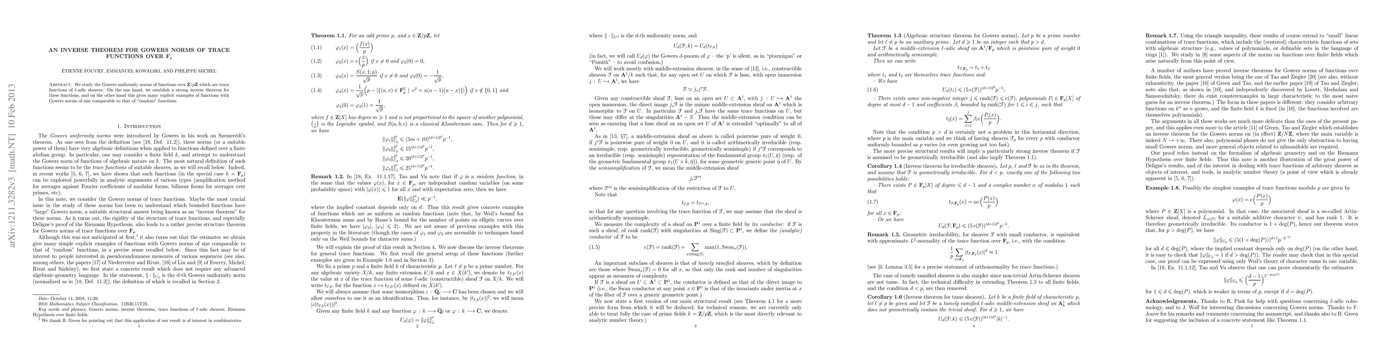 This paper proves estimates for Gowers uniformity norms of trace functions over prime fields, specifically those derived from $\ell$-adic sheaves, and establishes a robust inverse theorem for these functions.