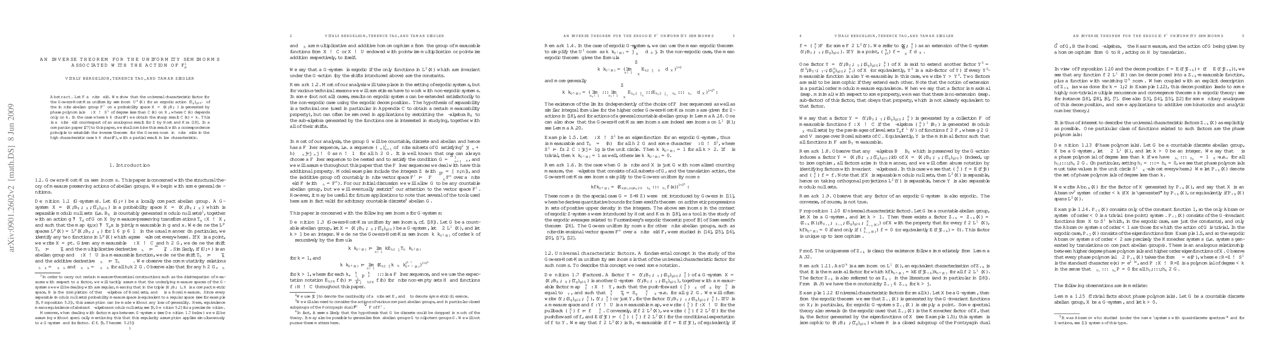 Let $\F$ a finite field. We show that the universal characteristic factor for the Gowers-Host-Kra uniformity seminorm $U^k(\X)$ for an ergodic action $(T_g)_{g \in \F^\omega}$ of the infinite abelian group $\F^\omega$ on a probability space $X = (X,\B,\mu)$ is generated by phase polynomials $\phi: X \to S^1$ of degree less than $C(k)$ on $X$, where $C(k)$ depends only on $k$. In the case where $k \leq \charac(\F)$ we obtain the sharp result $C(k)=k$. This is a finite field counterpart of an analogous result for $\Z$ by Host and Kra. In a companion paper to this paper, we shall combine this result with a correspondence principle to establish the inverse theorem for the Gowers norm in finite fields in the high characteristic case $k \leq \charac(\F)$, with a partial result in low characteristic.
