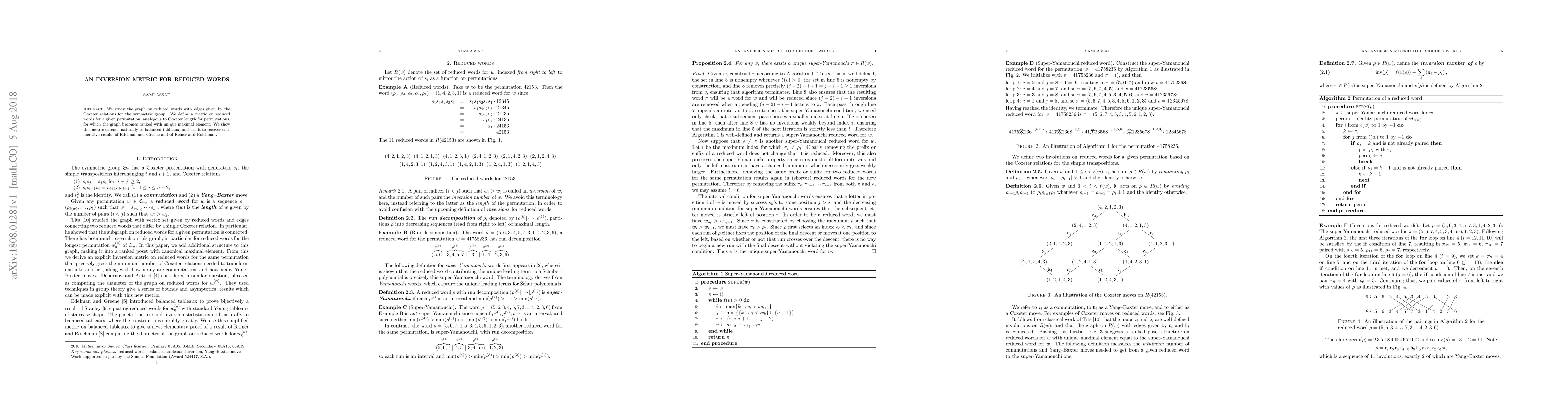 This paper introduces a metric on reduced words for permutations based on Coxeter relations, ranking the graph of these words with a unique maximal element. The metric extends to balanced tableaux, enabling the recovery of enumerative results from Edelman-Greene and Reiner-Roichman.