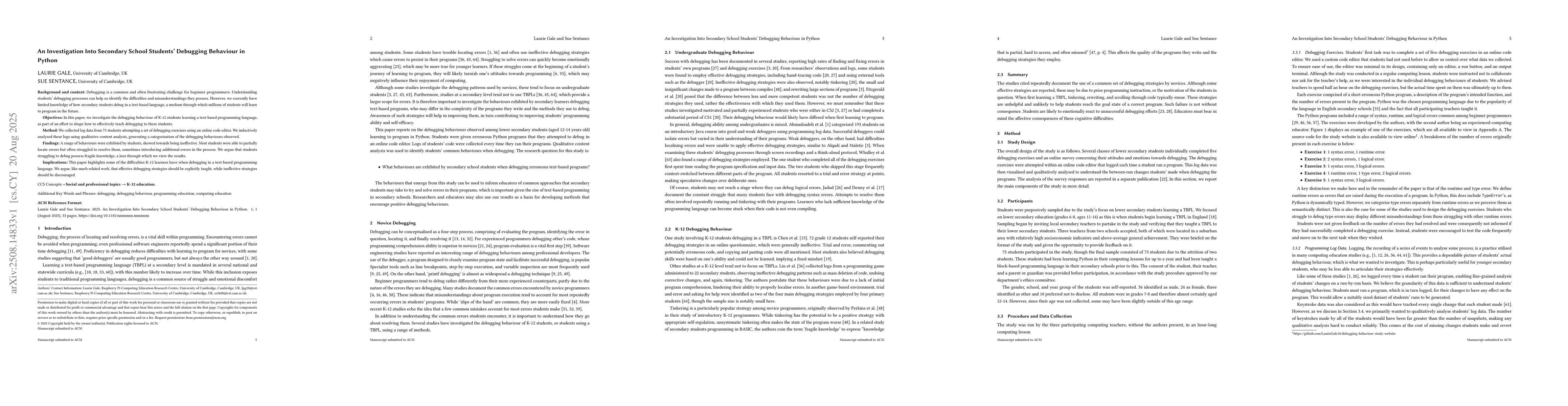 This study is among the first to investigate secondary school students' debugging behaviors in text-based programming languages, providing valuable insights for educators and curriculum developers.