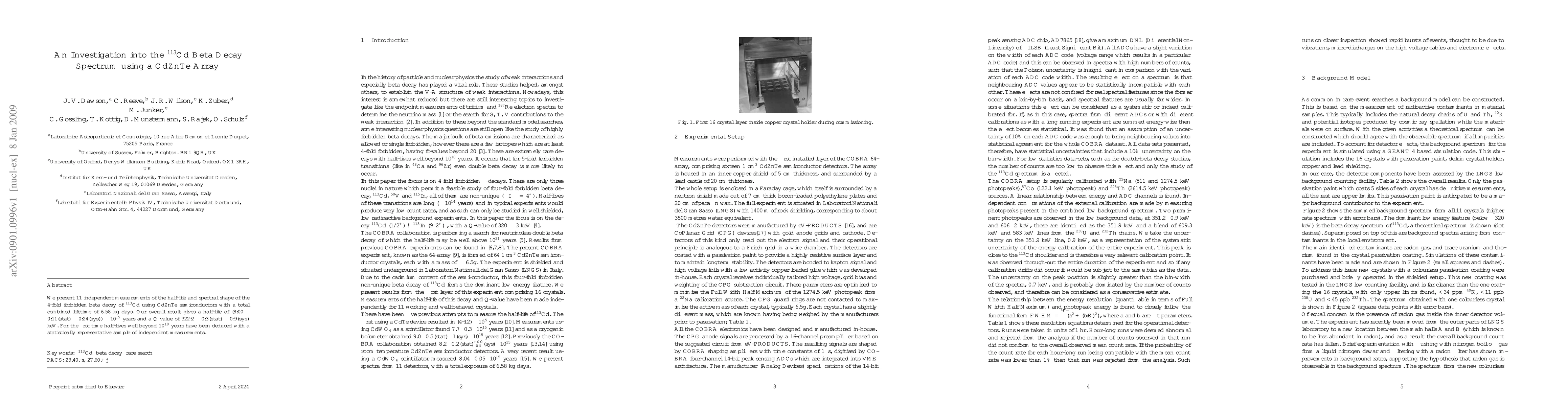 Researchers measured the 113-Cd beta decay spectrum using CdZnTe semiconductors, determining a half-life of (8.00 +/- 0.11(stat) +/- 0.24(sys)) x 10^15 years.