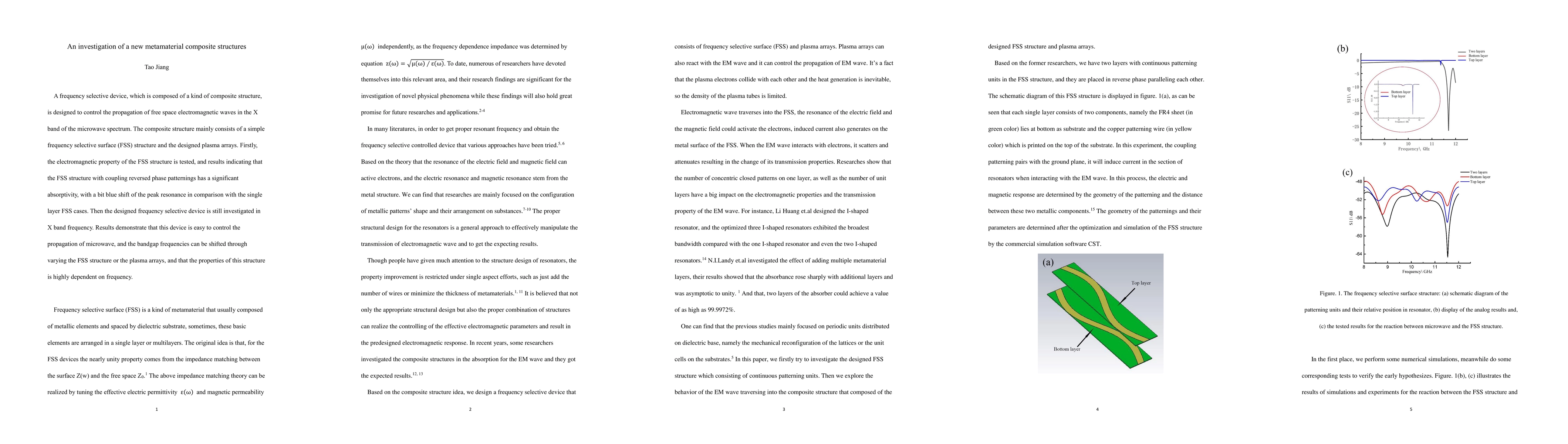 This research investigates a new metamaterial composite structure composed of a frequency selective surface (FSS) and plasma arrays, designed to control microwave propagation in the X band. The FSS structure with reversed phase patternings shows significant absorptivity and tunable bandgap frequencies, demonstrating the ability to manipulate electromagnetic wave propagation.