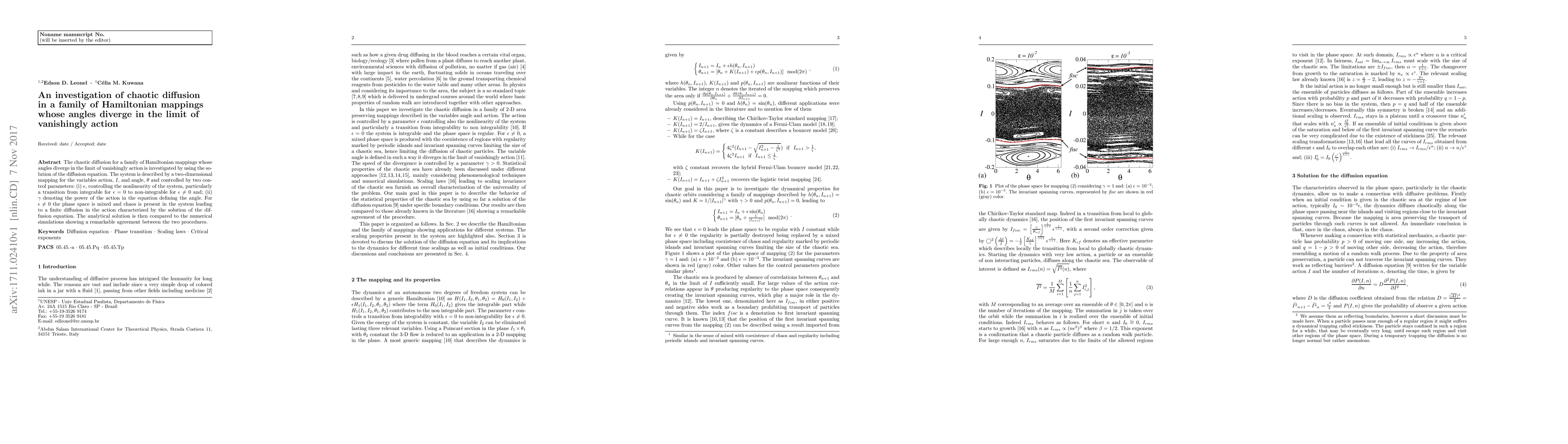 The chaotic diffusion for a family of Hamiltonian mappings whose angles diverge in the limit of vanishingly action is investigated by using the solution of the diffusion equation. The system is described by a two-dimensional mapping for the variables action, $I$, and angle, $\theta$ and controlled by two control parameters: (i) $\epsilon$, controlling the nonlinearity of the system, particularly a transition from integrable for $\epsilon=0$ to non-integrable for $\epsilon\ne0$ and; (ii) $\gamma$ denoting the power of the action in the equation defining the angle. For $\epsilon\ne0$ the phase space is mixed and chaos is present in the system leading to a finite diffusion in the action characterized by the solution of the diffusion equation. The analytical solution is then compared to the numerical simulations showing a remarkable agreement between the two procedures.