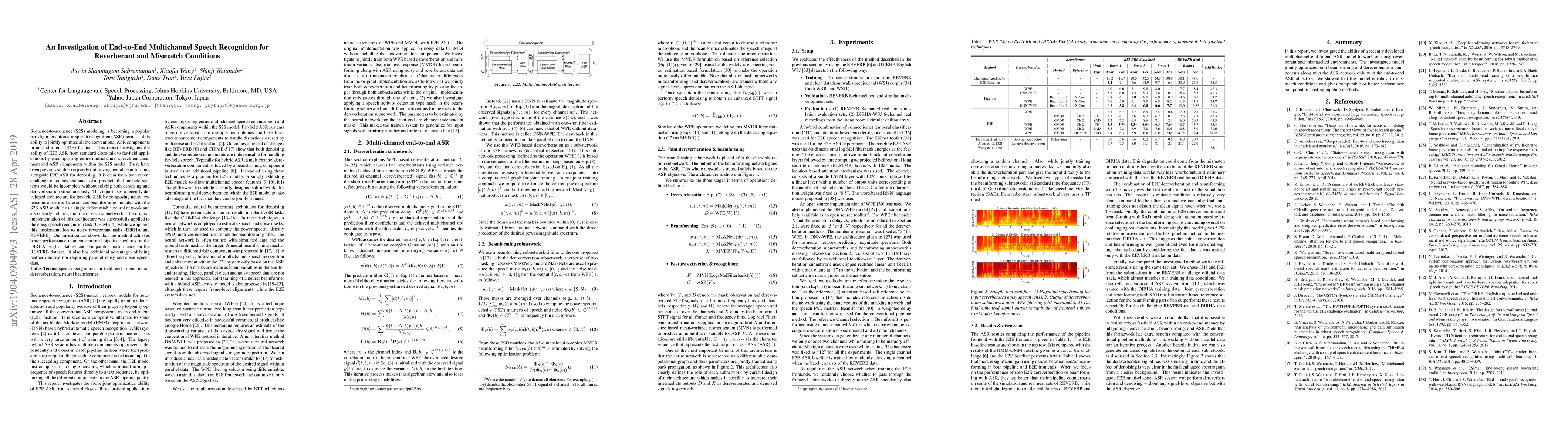 Sequence-to-sequence (S2S) modeling is becoming a popular paradigm for automatic speech recognition (ASR) because of its ability to jointly optimize all the conventional ASR components in an end-to-end (E2E) fashion. This report investigates the ability of E2E ASR from standard close-talk to far-field applications by encompassing entire multichannel speech enhancement and ASR components within the S2S model. There have been previous studies on jointly optimizing neural beamforming alongside E2E ASR for denoising. It is clear from both recent challenge outcomes and successful products that far-field systems would be incomplete without solving both denoising and dereverberation simultaneously. This report uses a recently developed architecture for far-field ASR by composing neural extensions of dereverberation and beamforming modules with the S2S ASR module as a single differentiable neural network and also clearly defining the role of each subnetwork. The original implementation of this architecture was successfully applied to the noisy speech recognition task (CHiME-4), while we applied this implementation to noisy reverberant tasks (DIRHA and REVERB). Our investigation shows that the method achieves better performance than conventional pipeline methods on the DIRHA English dataset and comparable performance on the REVERB dataset. It also has additional advantages of being neither iterative nor requiring parallel noisy and clean speech data.