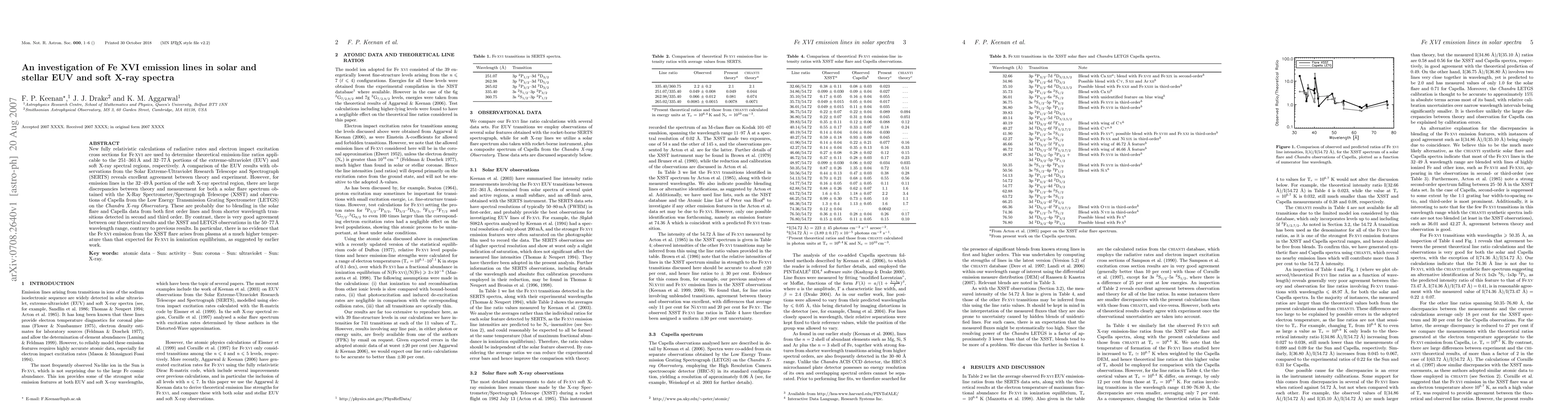 This paper investigates Fe XVI emission lines using new relativistic calculations, finding excellent agreement between theoretical and observational data in the EUV range but significant discrepancies in the soft X-ray range due to blending effects, with good agreement in the 50 - 77 A range, refuting earlier claims of higher-temperature plasmas.