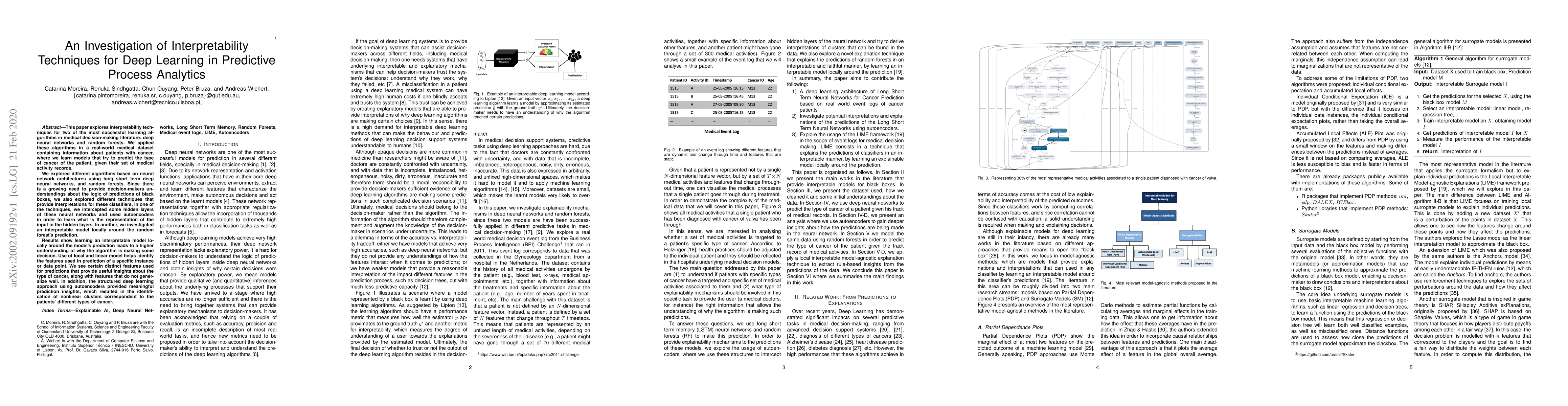 A study investigated interpretability techniques for deep learning in predictive process analytics, focusing on medical decision-making with neural networks and random forests, finding that local models provide better insights into predictions.